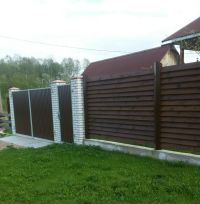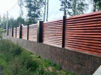 При этом само ограждение дополнительно отделывается при помощи самых разнообразных материалов – кирпича, профнастила, камня. Но помните, что сама древесина должна быть качественной, без повреждений, с обработкой антисептиком.
