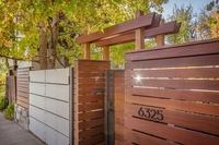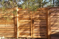 Подобно показанному: панель с открытыми жалюзи высотой 6 футов, из красного дерева около 21,50 долларов за погонный фут; Bay Area Fence & Deck, Inc.