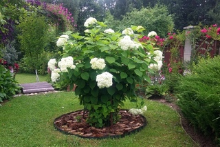 Особенностью всех видов гортензии является сочетание крупных шапок цветов, которые могут достигать 30 см в диаметре, и гибких побегов. Под тяжестью цветов они склоняются и занимают больше пространства. Если вы хотите посадить кусты гортензии вдоль дорожки, необходимо отступить от неё хотя бы на метр.