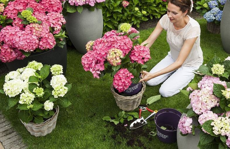 Пересадку гортензии осуществляют в те же сроки, что и первичную посадку, то есть в сентябре.