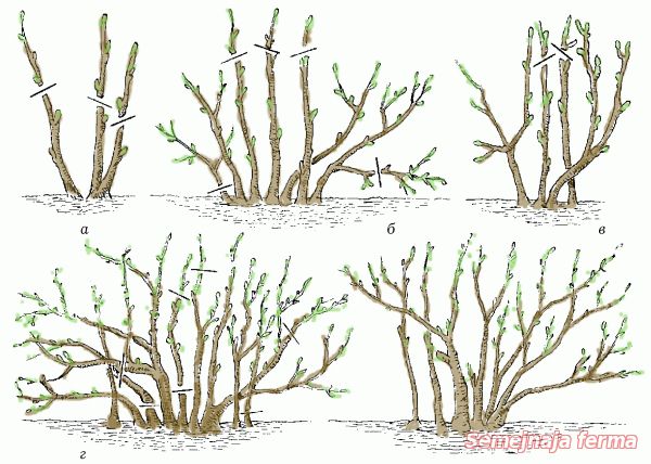 Верхушки нулевых побегов необходимо укоротить, как и отмирающие кончики на старших побегах. Это будет способствовать обильному весеннему ветвлению.