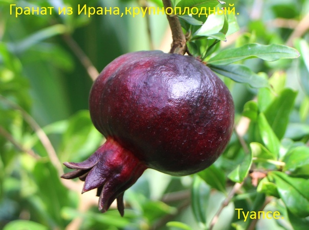 Невысокий кустарник. Очень крупные гранаты. Зерна среднего размера, сок также сладкий но с кислинкой.