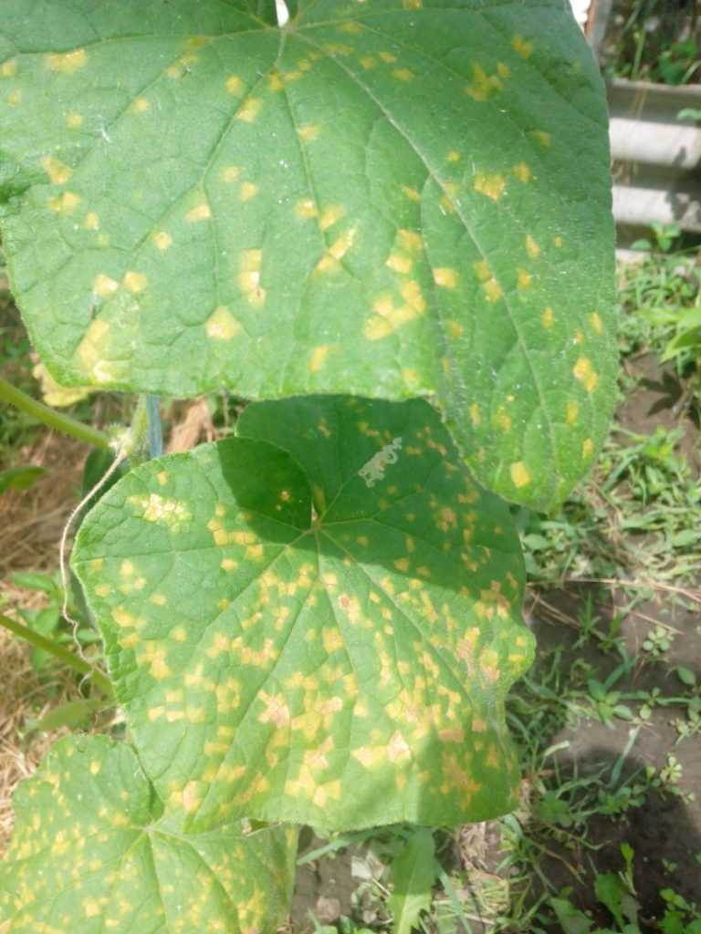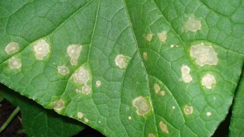 Заражение может сохраняться в семенах огурца на протяжении многих лет. На листве образовываются бурые пятнышки. Со временем они разрастаются и расширяются.