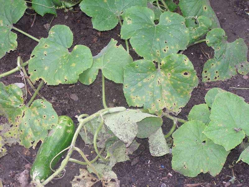 Потом заражённые ткани засыхают, буреют и отпадают. На плодах огурца, возможно, проявление угловатой пятнистости. Плод огурца выглядит так, как будто его расклевали птицы. Если замечены первые признаки бактериоза, необходимо избавиться от заражённых растений или плодов. Лечение кустов огурца проводят бордоской смесью или фунгицидами.