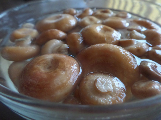 - В воде растворяют соль, количество которой указано в рецепте, добавляют грибы и кипятят 10 минут.