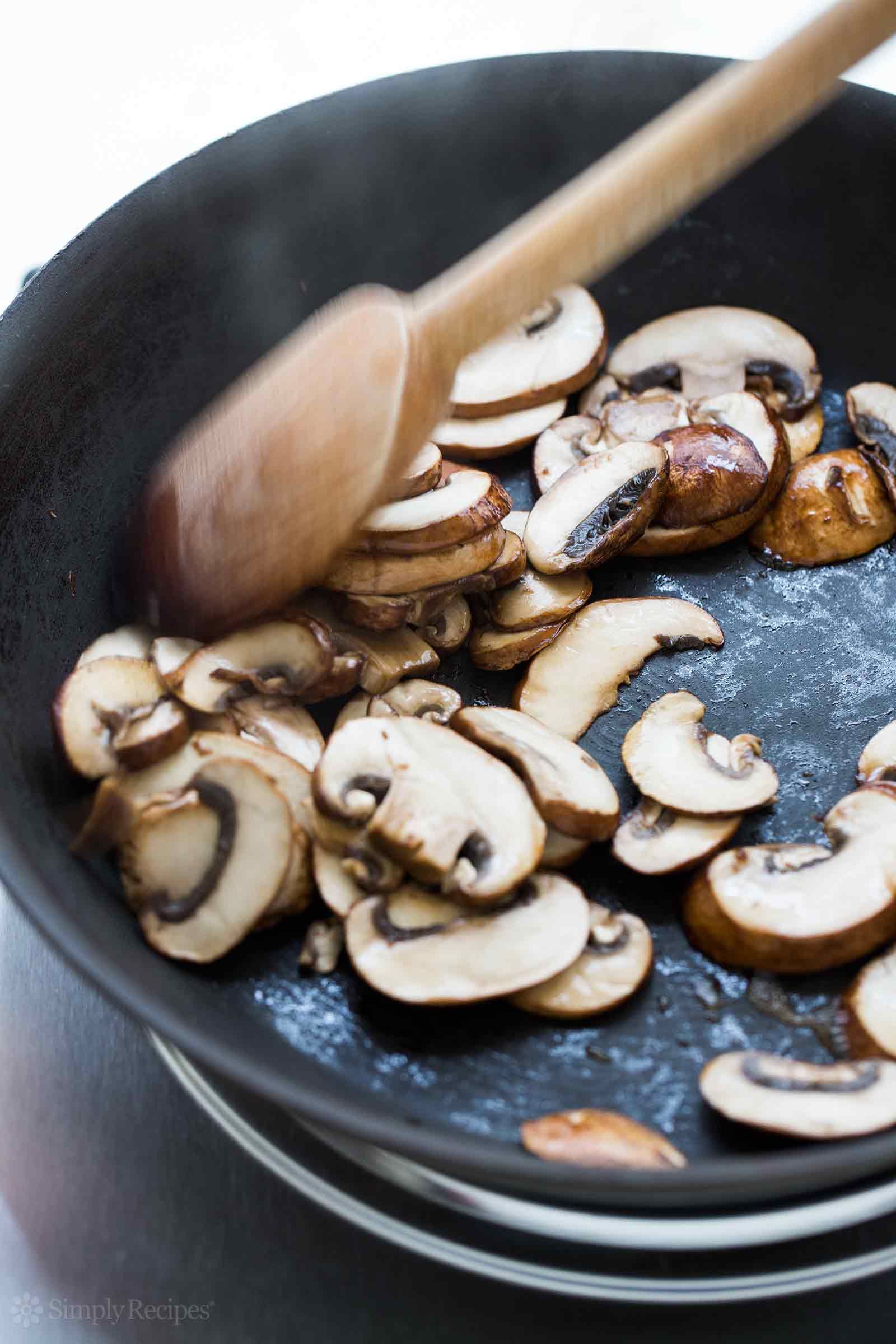 К счастью, поскольку для начала мы добавляем только половину грибов (по сравнению с всеми грибами), на сковороде не должно быть много жидкости. Ваша сковорода должна быть достаточно горячей, чтобы большая часть жидкости сразу испарилась.