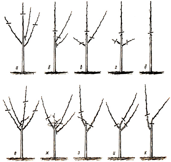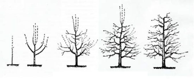 С первых лет формируют кроны, которые в последующем будут хорошо освещенные, с равномерно распределенными побегами.