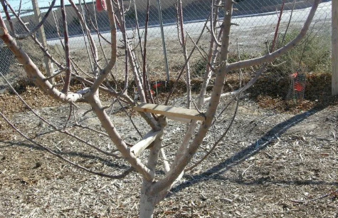 Если ветки слишком толстые (более половины толщины проводника), их удаляют, как правило, в процессе формировки. Такое правило обрезки используют при формировании первого яруса кроны. Это способствует росту других побегов.