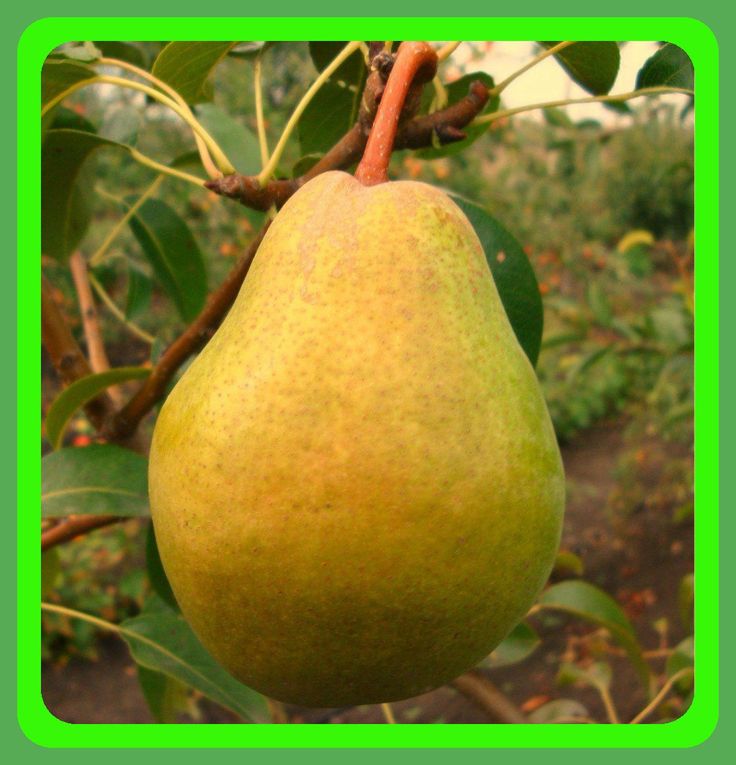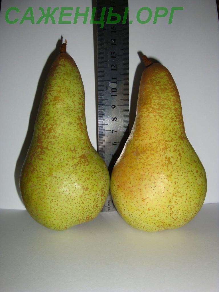 Формирует высокое раскидистое быстрорастущее дерево. Плоды отличного вкуса с приятным ароматом, довольно крупного размера 200-250 г классической грушевидной формы и ярко-желтого окраса. Созревают в первых числах сентября. Могут хранится 2 недели в прохладном месте.