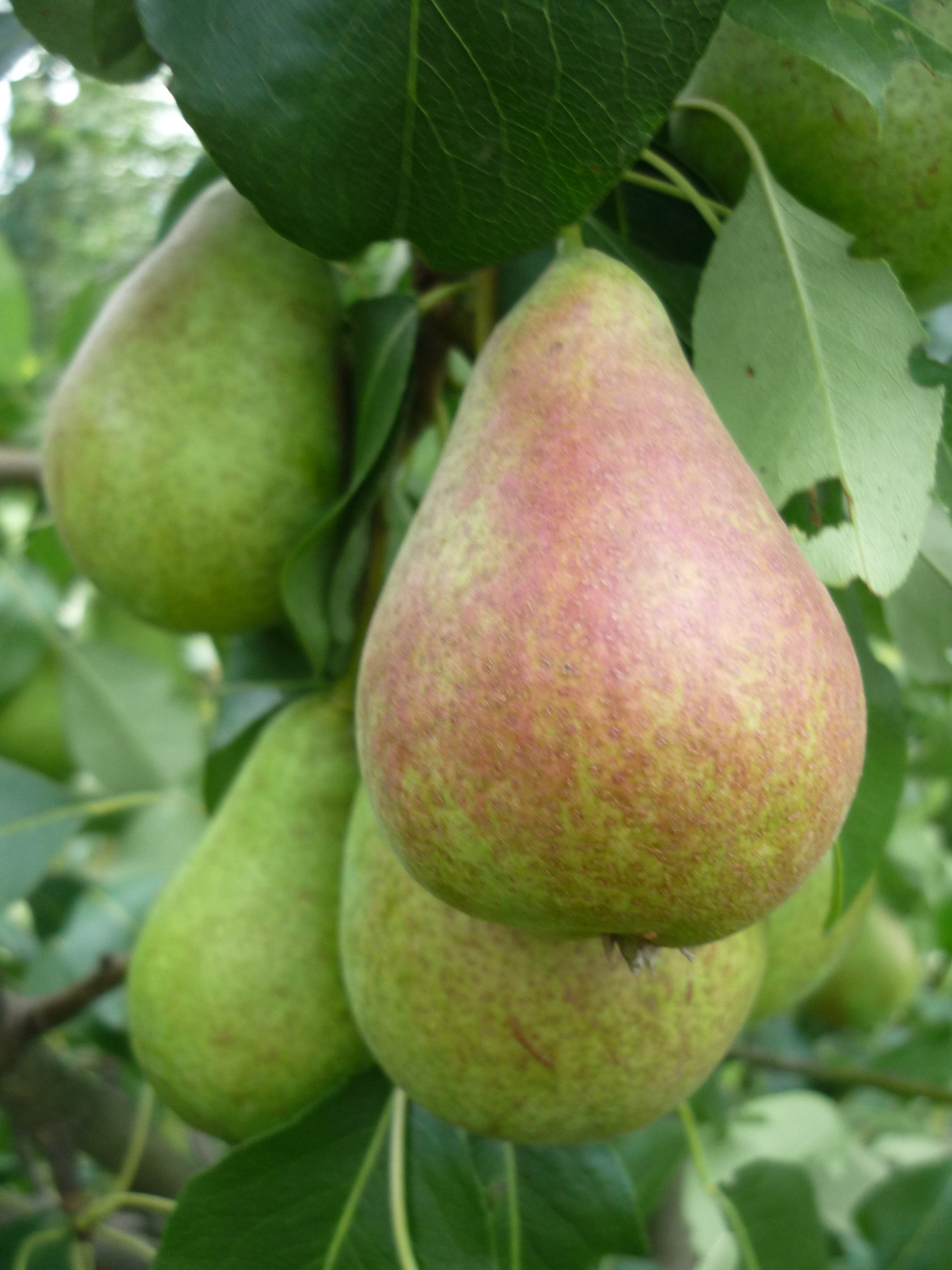 — от малого до среднего; медведи в скоплениях; малиново-золотой цвет; очень красивый, тающий, насыщенный, сладкий, живой, ароматный вкус; отлично; очень продуктивно.Одна из лучших ранних груш. Хорош для рынок или семейное использование. Сезон, август.