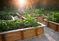 - высокие грядки рекомендуются для посадки разных овощей. Для них вы можете подобрать недорогие строительные материалы. Кроме того, им не требуется регулярная перекопка. Важным параметром является ширина и высота. Из простых решений можно подобрать деревянную грядку из досок. Неплохо смотрятся и насыпные посадки;