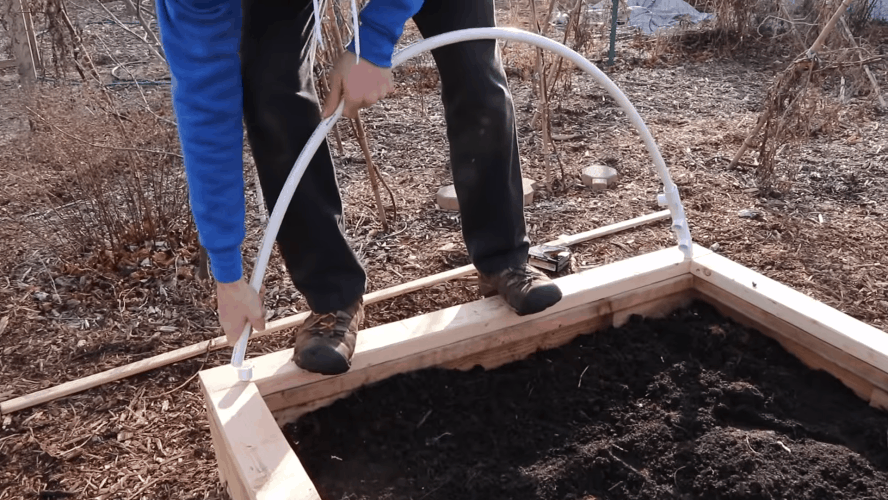 Теперь выполните следующие действия, чтобы создать теплицу своими руками для приподнятой грядки: