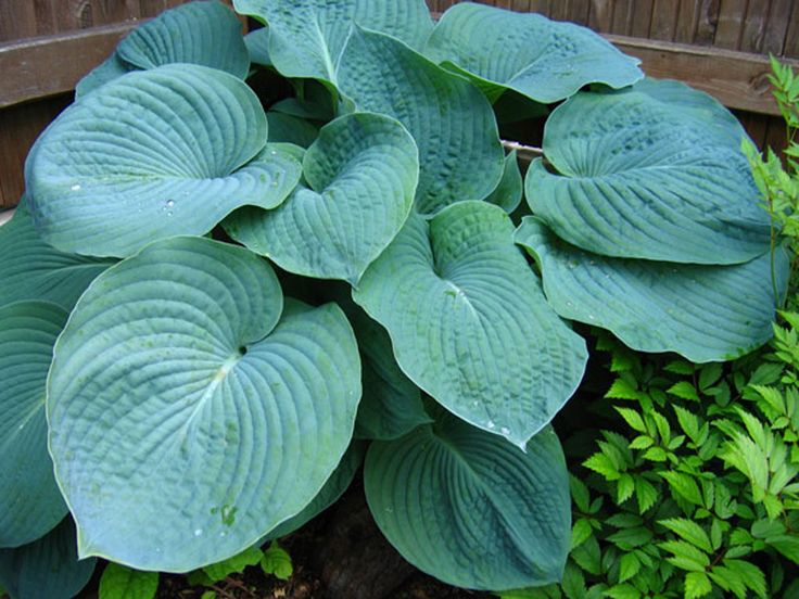 Это одна из самых популярных хост, растущих в полутени или в полной тени. Это растение медленно приживается, но имеет толстые сине-зеленые листья с сильными прожилками и широкими желто-зелеными краями.