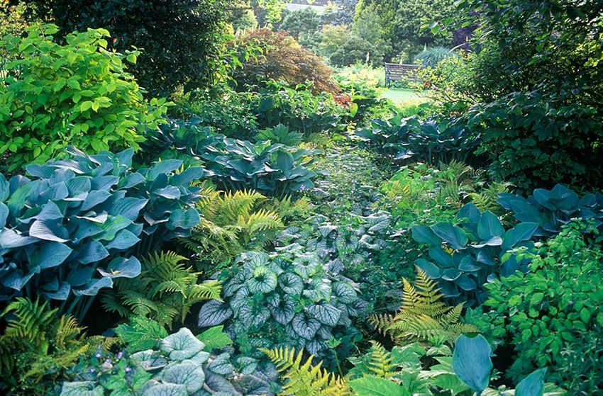 Зона отдыха в загородном доме: несколько сортов хосты и папортник