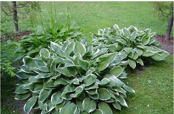 Hosta ‘Sagae’ * — большие сине-зеленые листья с кремовыми краями