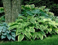 Hosta ‘June’ * — листья с синими краями и кремовой серединкой, переходящей в шартрез