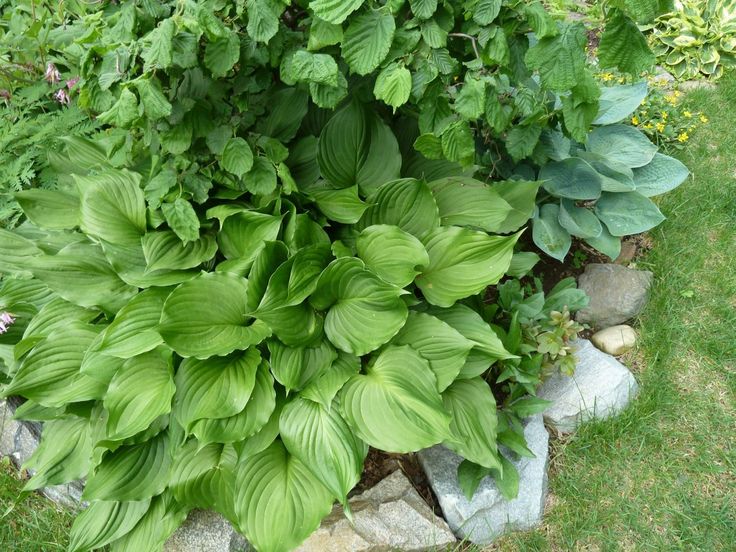 Хосты эффектны в одиночных посадках на фоне газона, особенно пестролистные формы. Красиво смотрятся возле водоемов.