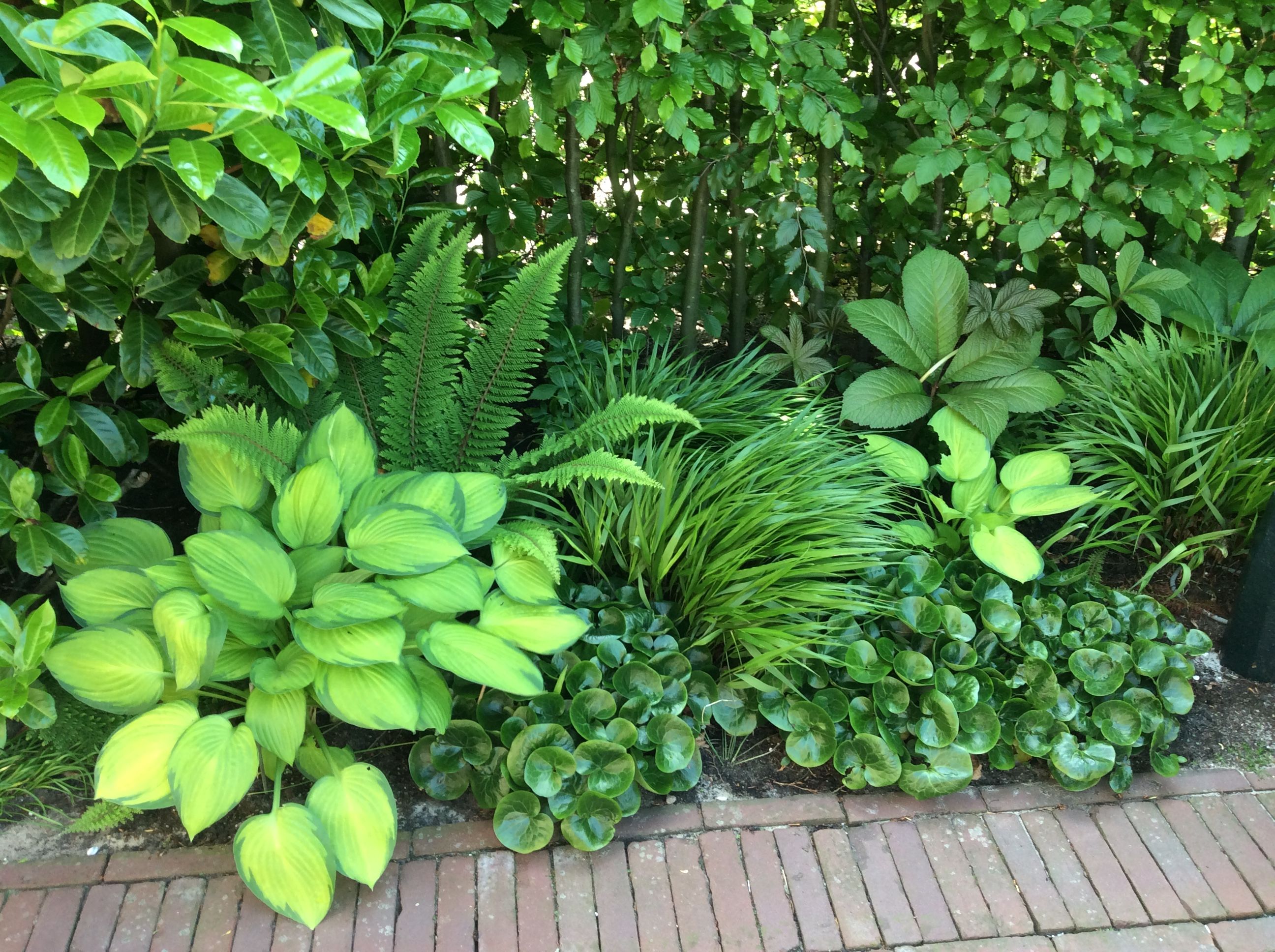 Если на территорию солнечные лучи попадают в маленьком количестве, то отличным выбором станут теневые кусты. Они характеризуются не красивым цветением, а пышными листочками разнообразных форм. Можно выбрать для композиции многолетники разных размеров, создав многоярусную растительную картину.