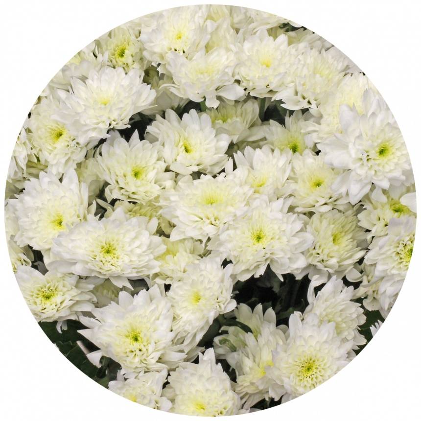 Самой распространённой среди российских садоводов является именно эта белая кустовая хризантема.