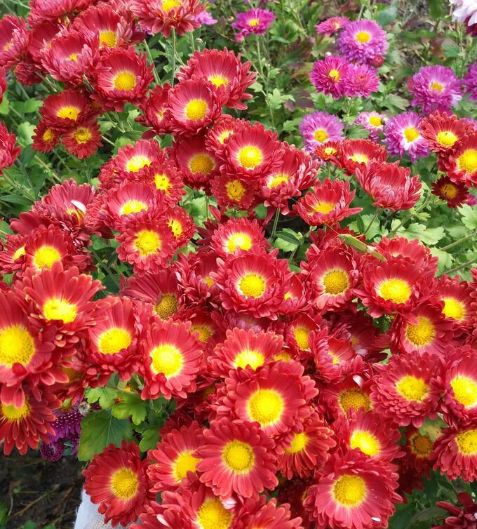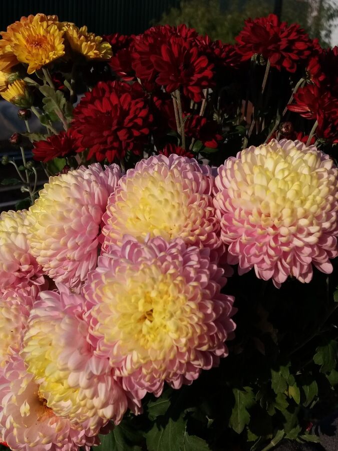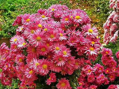 У данного вида хризантемы шарообразная форма куста. RentGirl. Цветет обильно. Цветовая гамма цветков обширна: белый, желтый, оранжевый, розовый, сливовый, красный. Цветки мелкие. Цвет пускает в сентябре месяце.