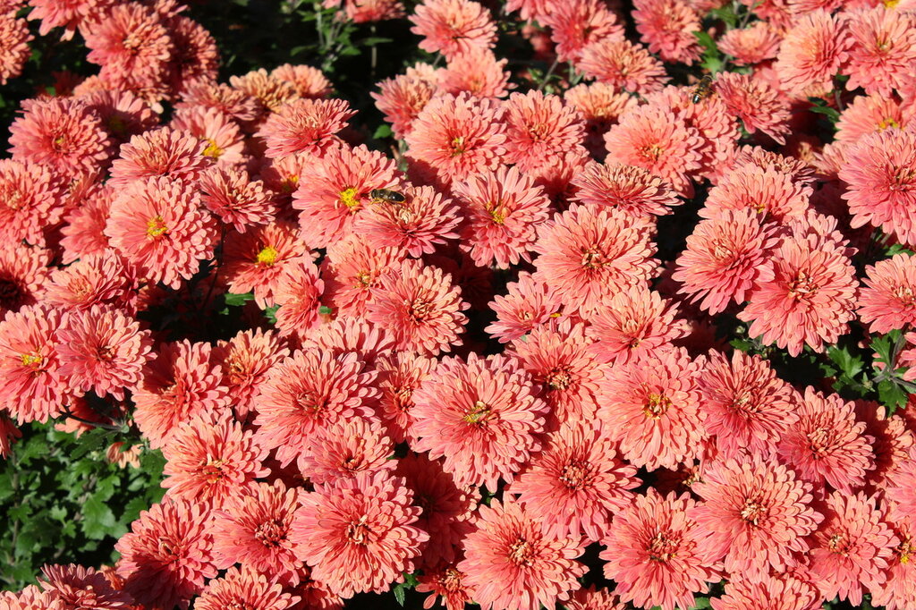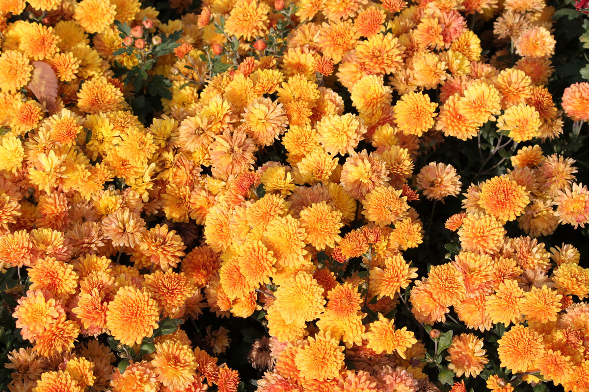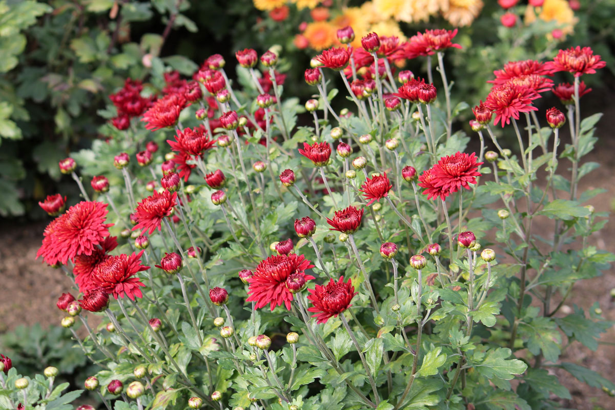 Продолжительность цветения у хризантем более месяца. У низкорослых сортов, как правило, очень декоративная листва, что позволяет формировать многоярусные клумбы, цветущие с конца лета до глубокой осени.