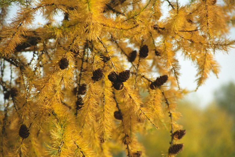 ЛиственницаВ отличие от других пород хвойных, это дерево сбрасывает осенью листву и, оставшись в наряде из изящных округлых шишек, прекрасно чувствует себя в зимние морозы.