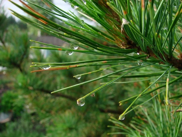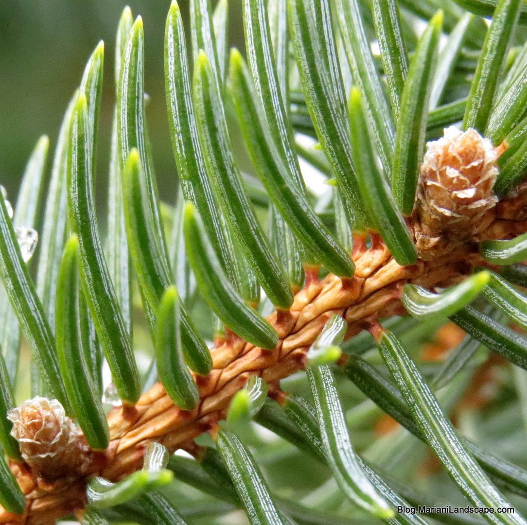 Очень мелкая, до 1-1,5 см, хвоя у настоящей тсуги. Красивые деревья тсуги встречаются в Северной Америке, Китае, Японии, Индии. Иголки у этого растения — плоские, как у пихты, нижняя сторона хвоинок с белыми полосками, а чаще совсем белая. Кончик хвоинки круглый.