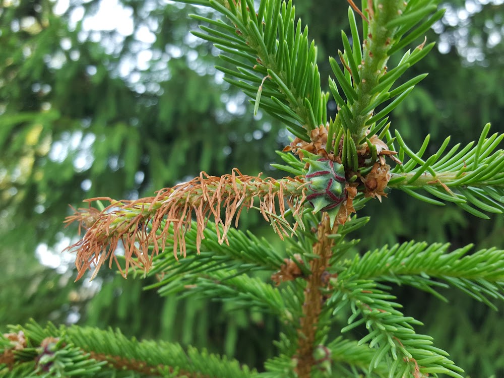 Самая короткая хвоя (всего 1-1,5 см) у ели канадской (Picea canadensis).