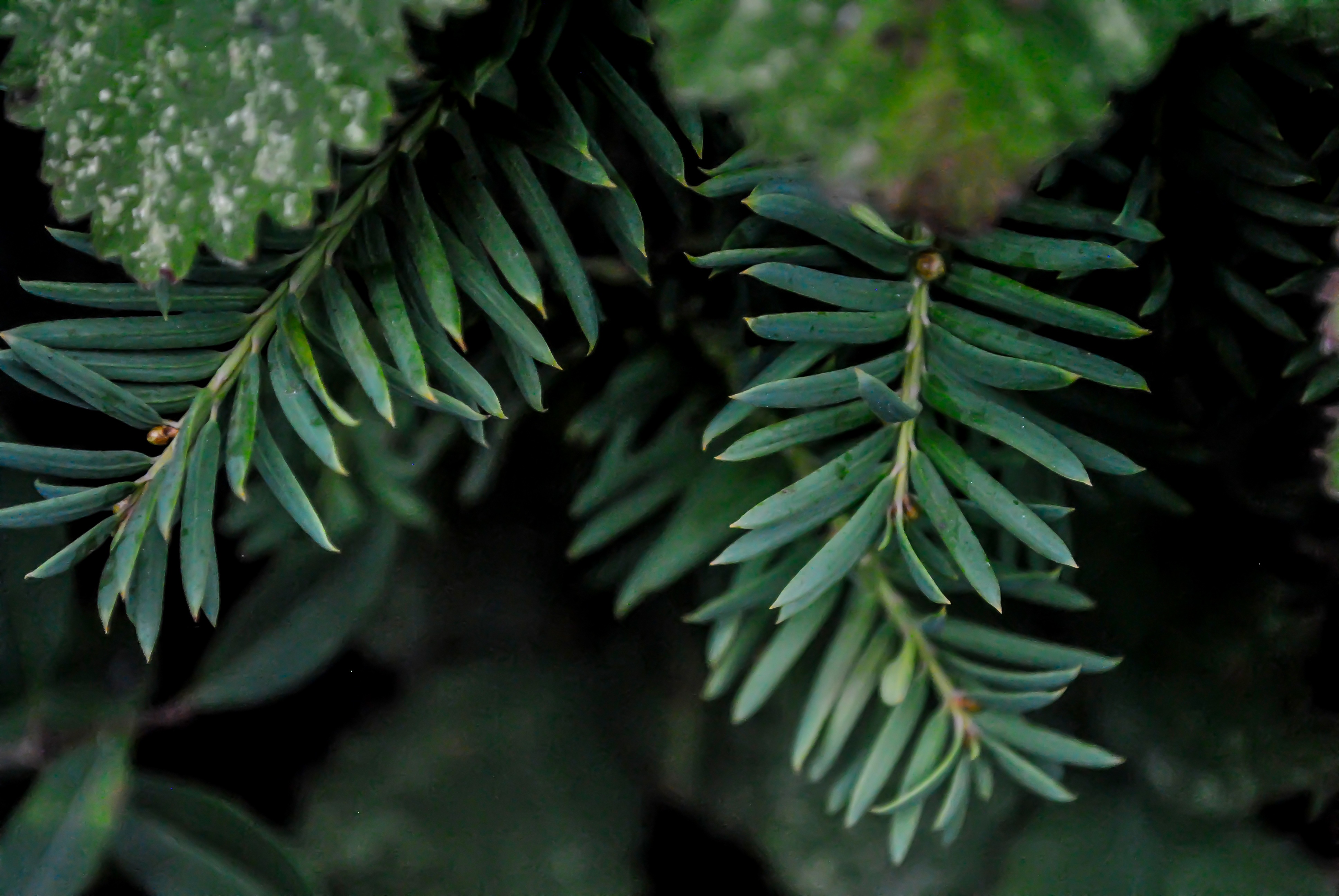 Длинные (до 3 см) узкие листья-иголки с двумя желтовато-зелеными полосками на нижней стороне и у тисса ягодного. Его листья живут очень долго, до 10 лет и более, и в течение всей жизни накапливают ядовитое вещество — таксин. Чем старше хвоя, тем более она ядовита. Семена тисса тоже содержат таксин, но в созревшей мясистой кровельке плодов ядовитых веществ нет, и птицы, например черные дрозды, охотно их поедают.