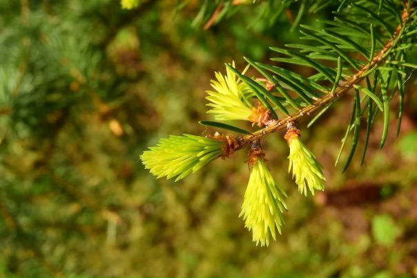 Хвоя лиственниц появляется в начале мая и облетает в конце сентября. Осенью дерево приобретает золотисто-желтый наряд.
