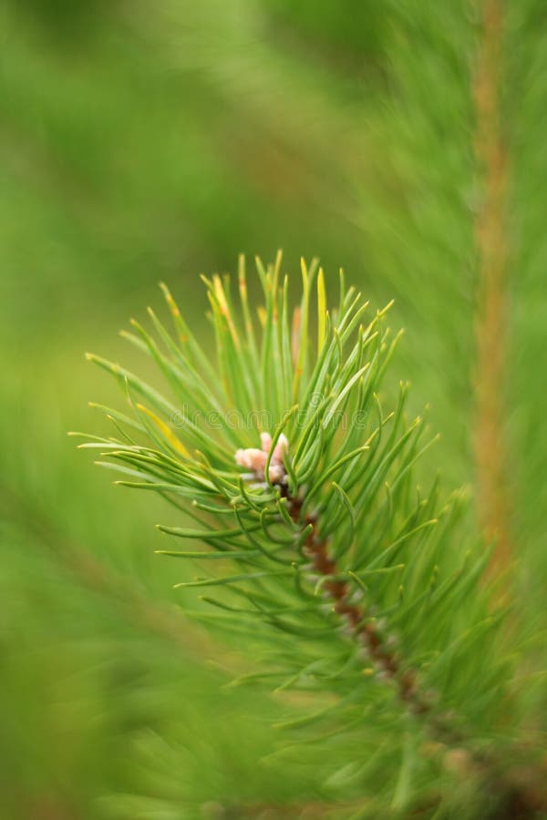 У большинства хвойных верхушки побегов защищены плотными тонкими чешуями, образующими в конце вегетационного сезона почку. Почечные чешуи покрыты защитным слоем смолы. На фото: молодая хвоинка, пробивающаяся из почки (увеличение в 10 раз).
