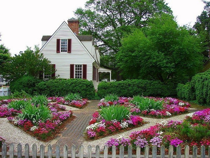 Конечно же, вы знаете, что палисадником принято называть участок земли, ведущий от дома к дороге. Его можно использовать по-разному. Чаще всего палисадник перед домом засаживают красивыми цветами и делают клумбу, обустраивают ровную и удобную дорожку, создают композиции из других растений. Где, как не в палисаднике можно воплощать самые смелые и креативные дизайнерские решения? Наша статья как раз об этом – возможности обустроить палисадник собственными руками, не прибегая к дорогим услугам ландшафтных дизайнеров.