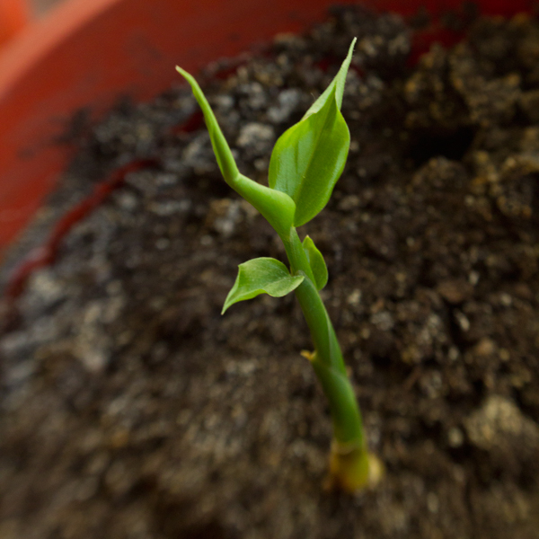 Горшок с растением ставят в теплое место (температура должна быть не менее двадцати градусов). При появлении первых всходов пленку с горшка снимают и ставят его в хорошо освещенное место.