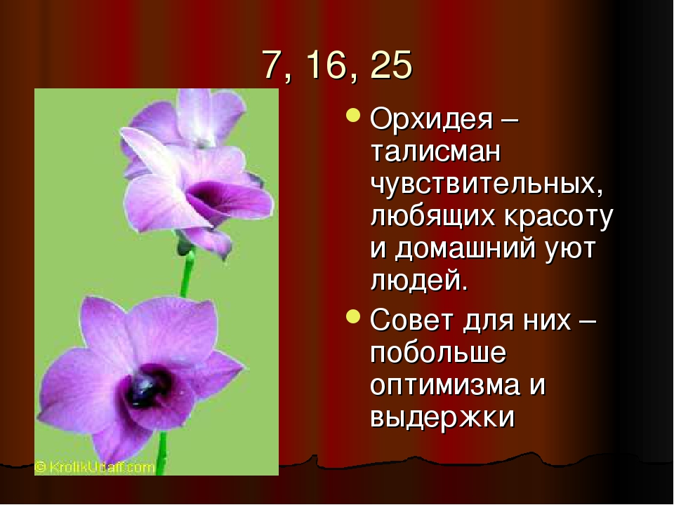 Орхидея — цветок с острова Гавайи.., символ красоты и любви, олицетворяет великолепие, благосклонность и роскошь… С самой орхидеей связано множество древних легенд и суеверий. До сих пор, есть люди, свято верящие в то, что в самой тропической чаще, существуют такие виды, питающиеся себе подобными, но даже животными и людьми. Однако, эти суеверные страхи, не имеют ничего общего с действительностью, хотя, справедливости ради стоит отметить, что есть отдельные виды, которые питаются мелкими насекомыми, имеющими неосторожность попасть в их сети.