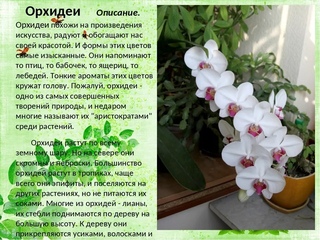 Более подробная информация об орхидеях на страницах раздела, поможет вам стать более осведомленнее и опытнее в деле разведения орхидей.