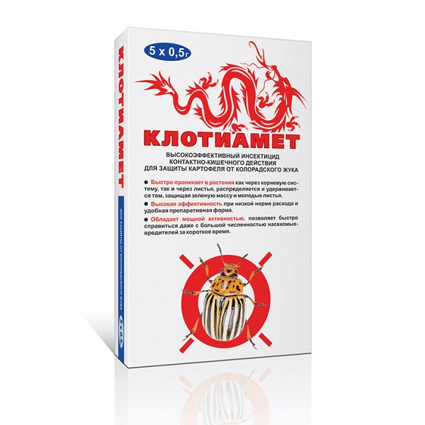 Клотианидин – одно из самых быстродействующих соединений в своём классе, инсектицидный эффект проявляется непосредственно после применения препарата. Средство уничтожает колорадских жуков на всех стадиях развития. Также препарат токсичен для жуков-щелкунов и их личинок (проволочников), тлей, цикадок, трипсов.