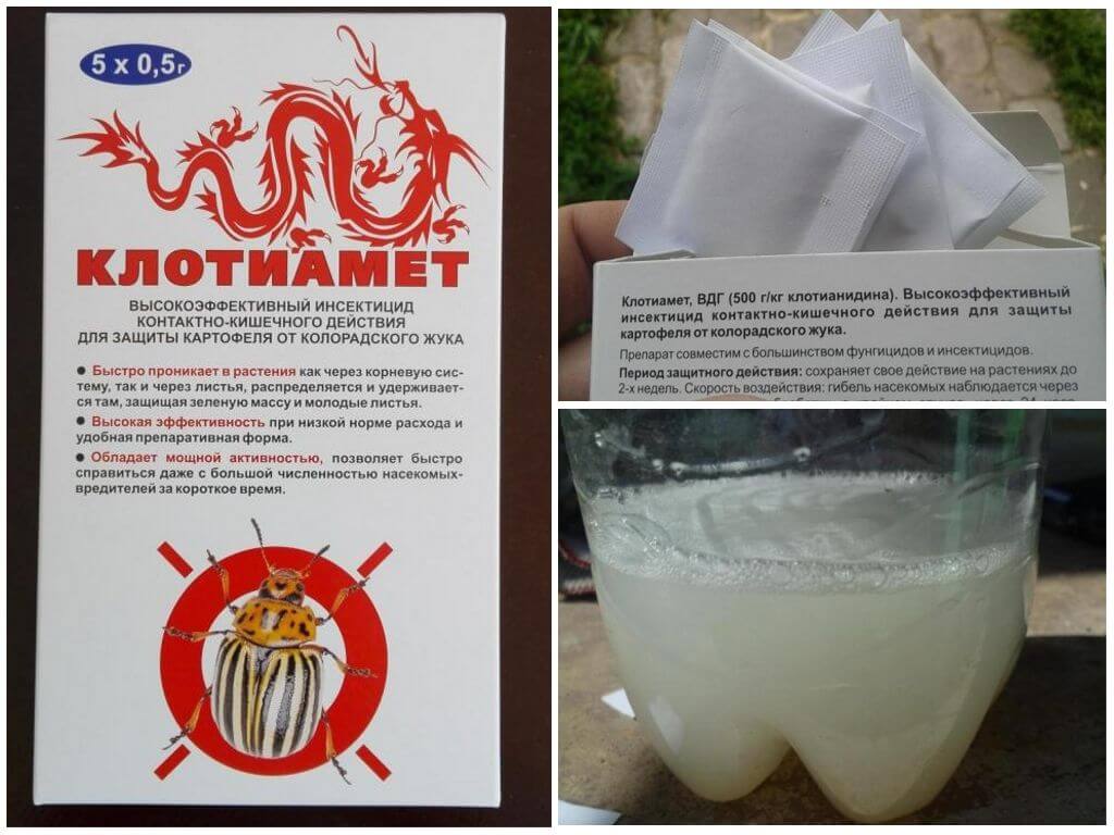 Картофельную плантацию обрабатывают в сухую, безветренную погоду, утром или вечером. Клотианидин впитывается в листья в течение часа. Время для опрыскивания нужно выбрать так, чтобы как минимум на протяжении часа после него не было дождя.