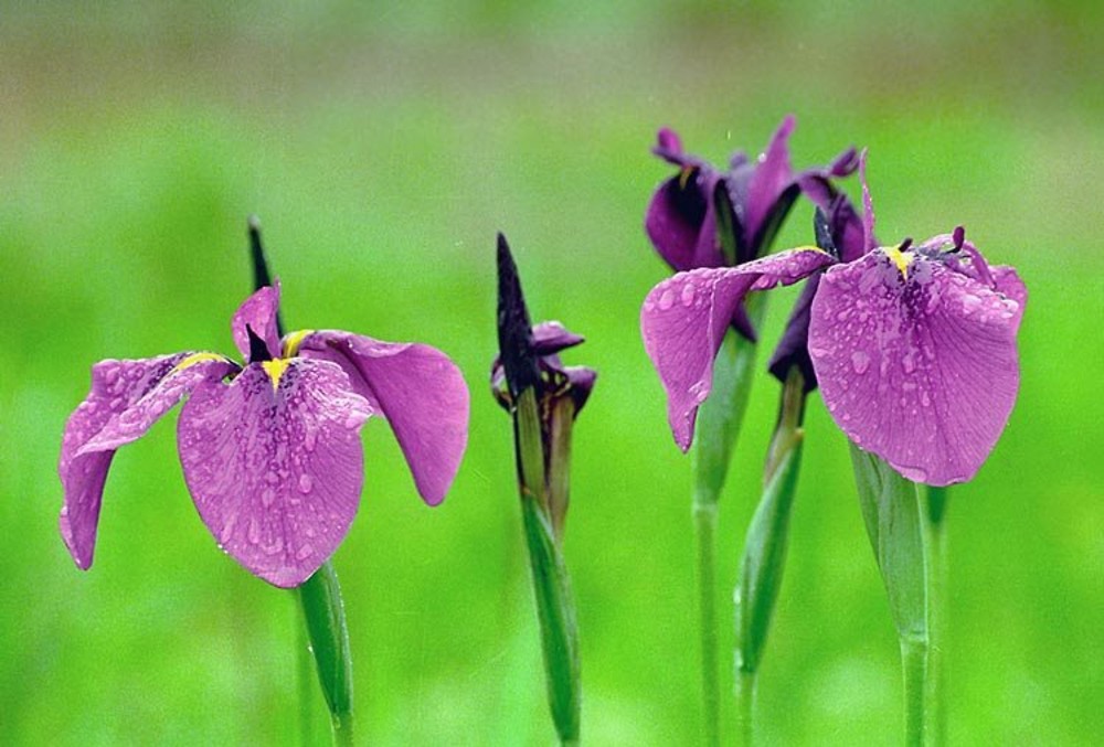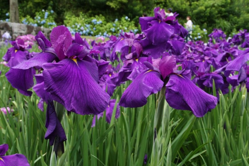 Лучшее время для просмотра японского водяного ириса — после 15 июня. Я рекомендую посетить сад ирисов под дождем.