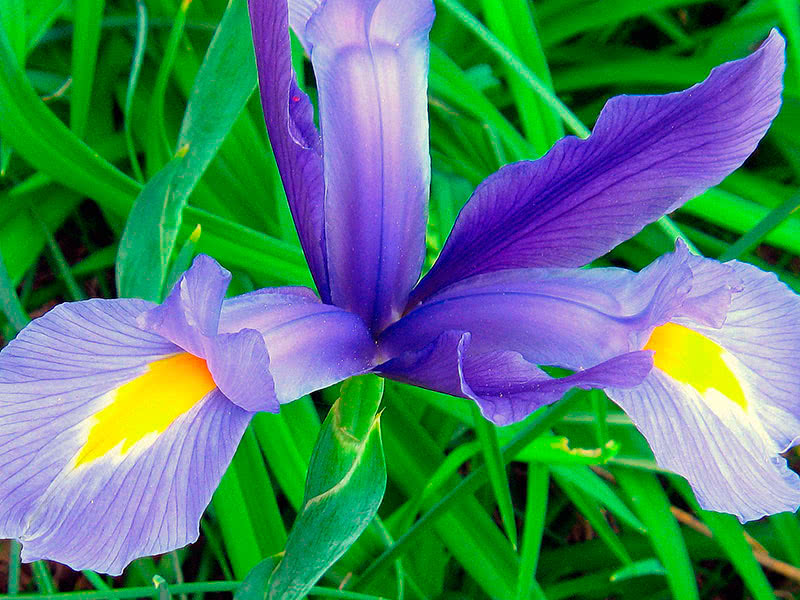 Его цветы имеют голубовато-лиловый оттенок с желтой или светло-голубой бородкой. Цветы крупные и имеют приятный, ненавязчивый аромат. - Ирис сибирский, изначально произрастающий на юге европейской части России, в Западной Европе, а также на Кавказе и в Сибири, не боится холодов. Это многолетнее растение весьма практичное: ведь оно почти не болеет, не требует специальной подкормки или регулярного деления. Данный вид вырастает обычно до 80-100 см, листья бывают узкие, как у злаковых растений. Цветы крупные: в диаметре достигают 10 см. При этом окраска цветка варьируется от нежно-голубой до насыщенной фиолетовой. В отличие от ириса германского, у него нет утонченного аромата.