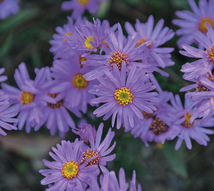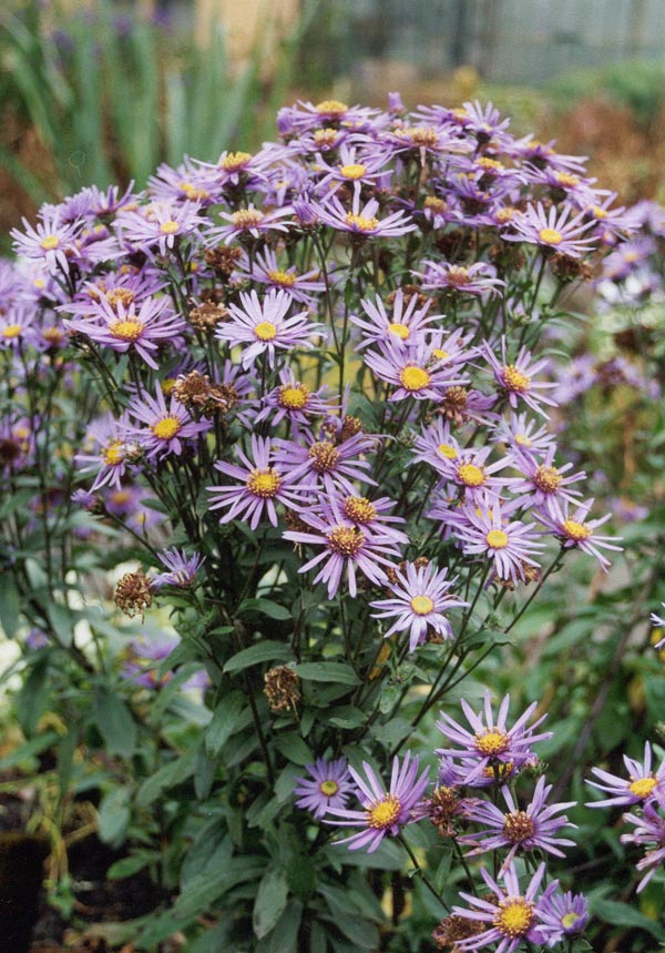 Астра новобельгийская (A. novi-belgii) – самая распространенная группа астр в наших садах родом из Северной Америки. Образует большие кусты с крепкими стеблями высотой 60–130 см. Их ласково называют “сентябринами”, так как основное цветение этого вида приходится именно на сентябрь. Диаметр цветков у разных сортов варьируется от 2 до 5 см. Цветет с середины августа до конца октября. Мне наиболее полюбились следующие сорта: “Sunset” (“Сансет”) – розово-сиреневый, куст шаровидный высотой 100 см, цветёт очень обильно; “Fellowship” (“Феллоушип”) – светло-розовый; “White Ladies” (“Вайт Ледиз”) – белый ранний махровый, высота – 130 см; “Маrie Ballard” (“Мари Байярд”) – полумахровая голубая, высота – 120 см; “Аda Ballard” (“Ада Байярд”) – очень крупная лавандово-голубая полумахровая, высота – 120 см; “Sara Ballard” (“Сара Байярд”) – полумахровая крупная ярко-сиреневая, “Patricia Ballard” (“Патрисия Байярд”) – лилово-розовая полумахровая красавица.