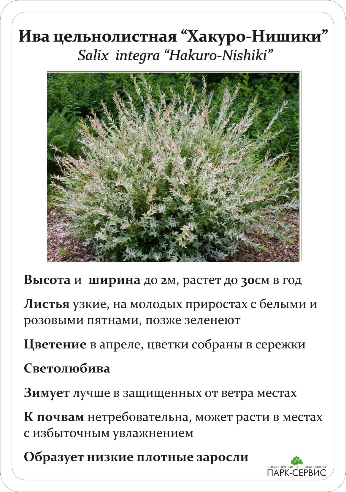 Декоративная ива цельнолистная хакуро нишики. Ива цельнолистная хакуро-нишики на штамбе Ива японская куст подготовка к зиме