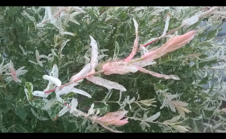 Ива пестрая или Salix integra ‘Hakuro-nishiki’ — это сорт с эффектной окраской, который можно найти в базе данных iScape как листопадный кустарник, который выделяется в ландшафте своими яркими листьями, меняющими цвет, благодаря которым куст выглядит почти розовым на фоне расстояние.