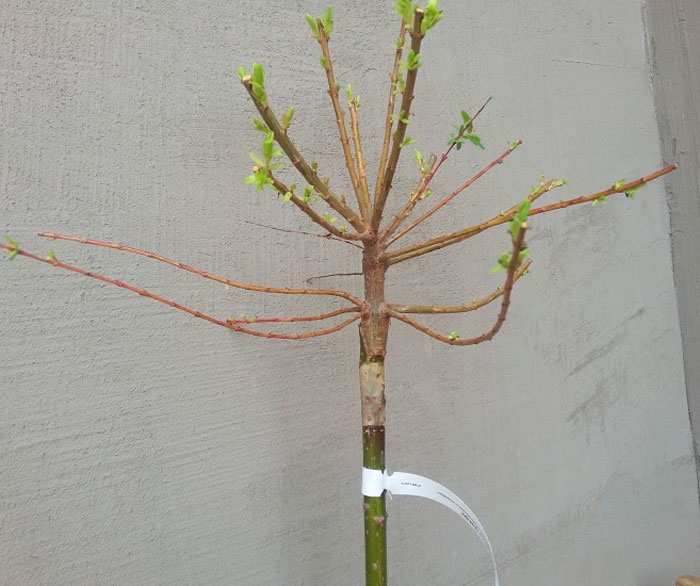 Задача арбориста – срезать с этих прямых радиальных ветвей лишние почки, чтобы куст на следующий год сохранил свою первоначальную «взрывную» форму.