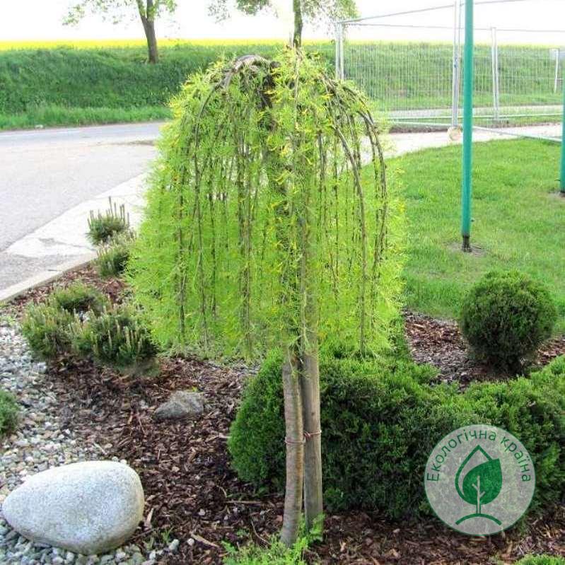 Висячая форма этого необычного дерева, широкие ветви и зеленые филигранные ветви сделают его непосредственным центром внимания в вашем дворе.