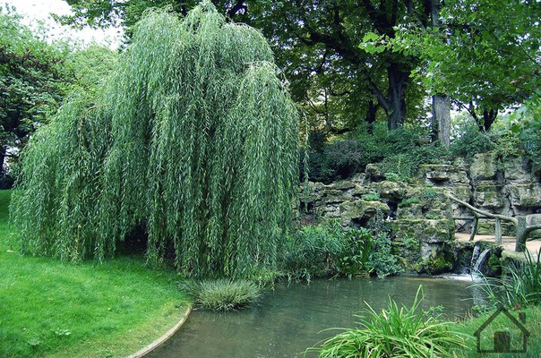 Salix babylonica : Вавилонская плакучая иваПлакучая ива с мощной вертикально ветвистой структурой и свисающими к земле боковыми ветвями.В молодом возрасте кора красновато-коричневая, листья ярко-зеленые сверху и молочно-зеленые снизу, становясь золотыми перед опаданием осенью. Цветы расположены в нечетких сережках, скрытых листвой.