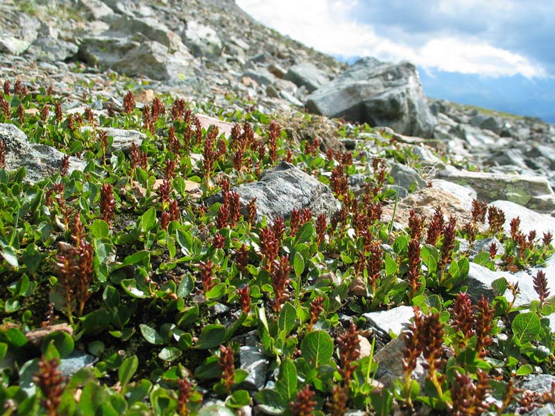 Скудная и каменистая почва в каменистых формах прекрасно удерживается корневой системой карликовых ив.