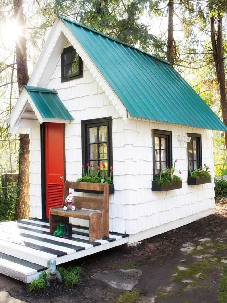 Для постройки небольшого садового домика популярностью пользуются грузовые контейнеры. В таком случае постройка дома обойдется недорого, и не будет требовать много времени. К преимуществам такого способа возведения садового домика относится: