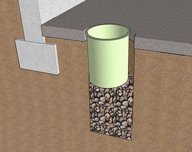Нижние узлы, встроенные в проницаемый слой, должны иметь отверстия, просверленные в боковых стенках, увеличивающие поверхность проникновения воды. Внутри впитывающей скважины размещены фильтрующие слои — дно из толстого гравия толщиной 0,7-1 м и верх из песка толщиной около 0,5 м. Водоснабжение должно быть расположено около 0,2 м на верхнем фильтрующем слое и направлено на крышке и сверху колодца должна быть установлена крышка с камином.