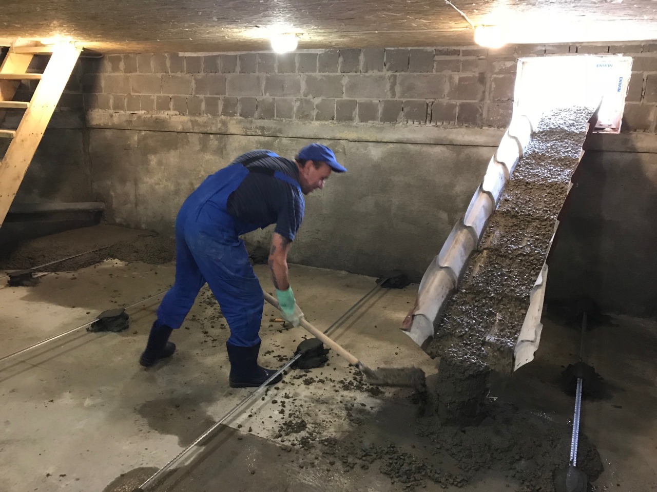Между ними привязана натянутая веревка, что позволяет легко измерять уклон в начале процесса копания. На протяжении всего процесса будут проводиться регулярные измерительные проверки.