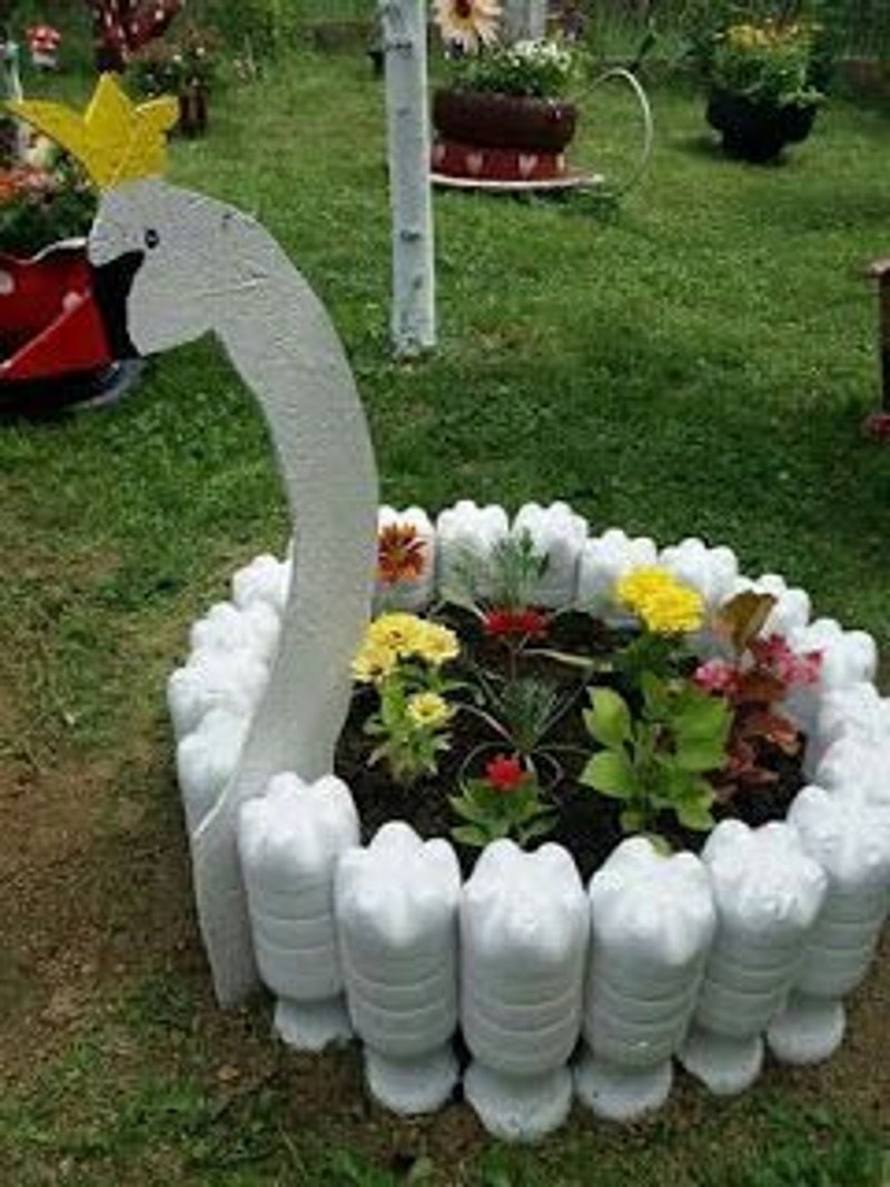 поделки из пластиковых бутылок для дачи и дома (23 фото). Оригинальные и яркие клумбы в саду из пластиковых бутылок своими руками